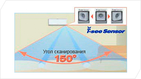 Компания Mitsubishi Electric разработала технологию дистанционного измерения температуры поверхности с помощью инфракрасного датчика (I-SEE сенсор). Появление этой технологии связано с тем, что в Японии пользователи проводят большую часть жизни на полу. Поэтому температура у поверхности пола для них зачастую важнее, чем абстрактная температура воздуха где-то в районе внутреннего блока. Инфракрасный «глаз» сканирует пространство в секторе 150o и измеряет температуру.
