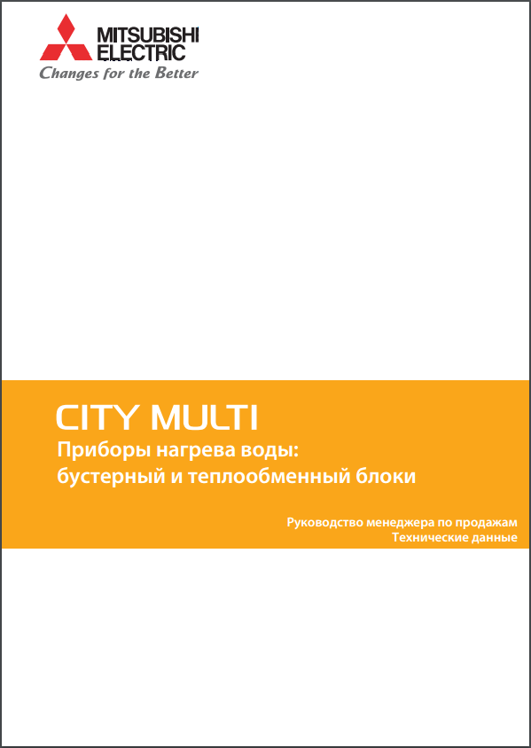 Брошюра содержит общее описание и основные технические характеристики бустерного и теплообменного блоков для нагрева воды, которые могут быть использованы в рамках мультизональной VRF-системы City Multi.