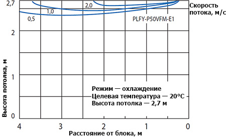 Горизонтальное распространение воздушного потока воздуха исключает попадание на людей охлажденного воздуха.