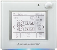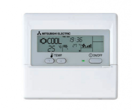 Индивидуальный пульт управления предназначен для управления 1 группой кондиционеров, в состав которой входят от 1 до 16 внутренних блоков. Пульт оснащен монохромным дисплеем с яркой подсветкой. Контраст изображения регулируется. Интерфейс пользователя русифицирован. Точность установки целевой температуры составляет 0,5°С или 1°С в зависимости от модели внутреннего блока.