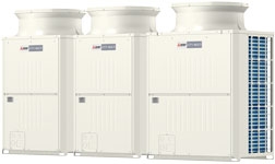 • Наружные блоки производительностью до 56 кВт выполнены в виде моноблока с 1 компрессором. Это упрощает монтаж и увеличивает надежность системы.
