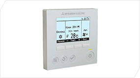Для управления кондиционером обычно используют беспроводной пульт. Однако в некоторых ситуациях, например при установке кондиционера в офисе, удобнее иметь проводной пульт, который не может потеряться. Бытовые кондиционеры Mitsubishi Electric допускают подключение проводного пульта (модели MSZ-FD, MSZ-EF/GE/SF). Если в доме установлено несколько кондиционеров, целесообразно предусмотреть центральный пульт управления. Mitsubishi Electric предлагает несколько видов таких пультов. Наиболее простые из них имеют небольшой монохромный дисплей и кнопки управления. С таких пультов можно управлять каждым внутренним блоком индивидуально или всеми сразу, следить за состоянием каждого блока, получать информацию о неисправностях.